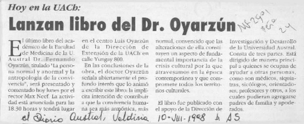 Se efectuó lanzamiento de "Diario de Luis Oyarzún" [artículo].