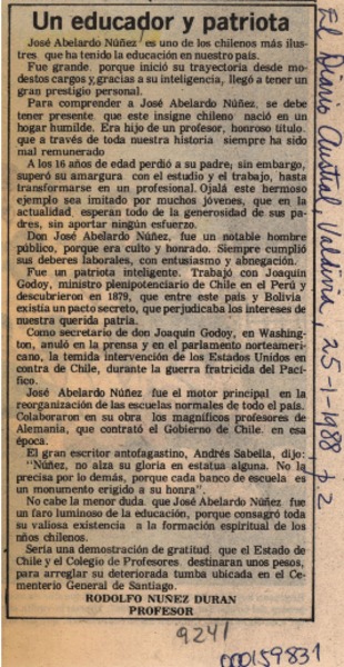 Un educador y patriota [artículo] Rodolfo Núñez Durán.