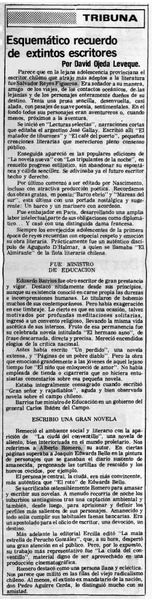 Tres escritores muertos que merecen el recuerdo [artículo] David Ojeda Leveque.