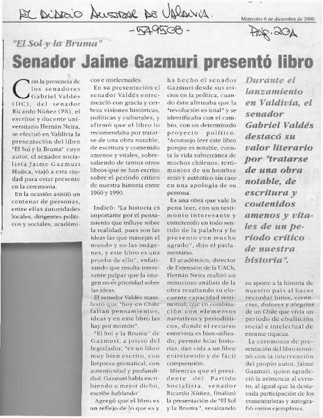 Autores chilenos - Autores españoles - Sol y la bruma - Gazmuri, Jaime - Martínez, Jesús Manuel