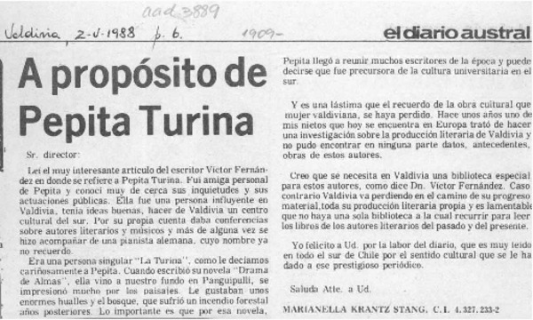 A propósito de Pepita Turina [artículo] Marianella Krantz Stang.