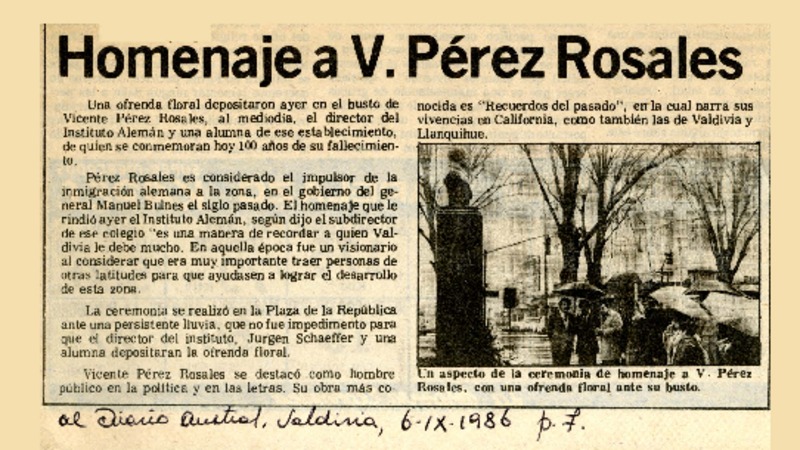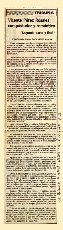 Vicente Pérez Rosales, conquistador y romántico [artículo] Digna Rodríguez Lamas.