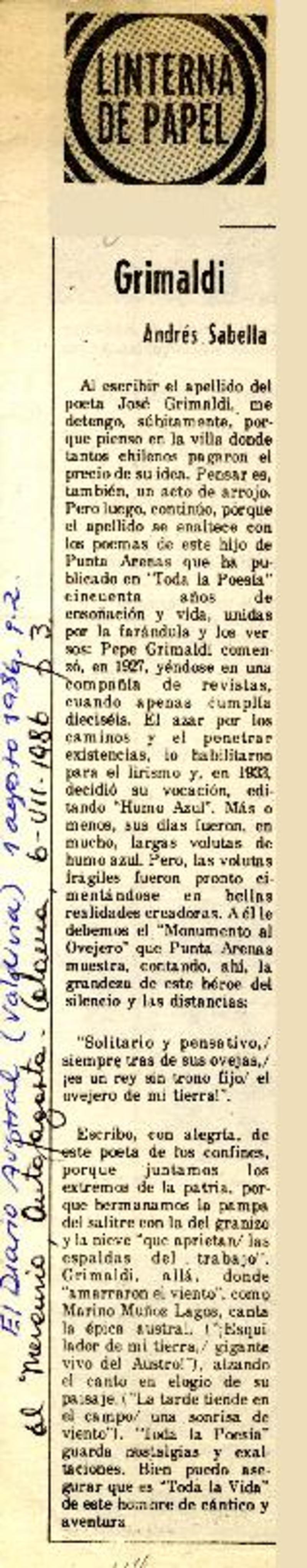 A Propósito de "páginas inéditas" [artículo] El tío José Salinas.