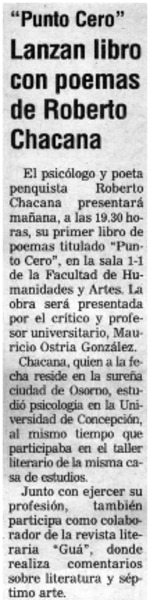 Lanzan libro con poemas de Roberto Chacana [artículo].