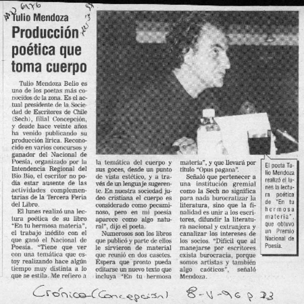 Tulio Mendoza ganó concurso de literatura [artículo].