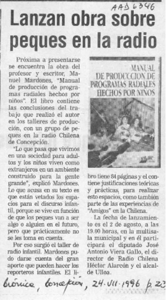 MARDONES, MANUEL - MANUAL DE PRODUCCION DE PROGRAMAS RADIALES HECHOS POR NIÑOS