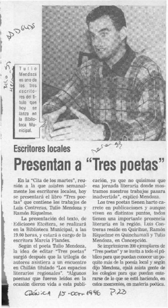 CONTRERAS JARA, LUIS - TRES POETAS - MENDOZA BELIO, TULIO HERNAN - RIQUELME, RAMON