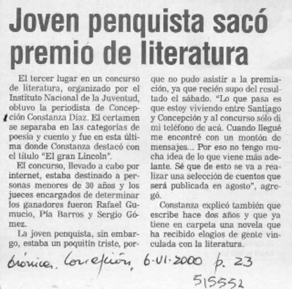 Penquista obtuvo importante premio de poesía en España [artículo]