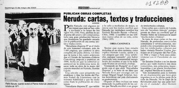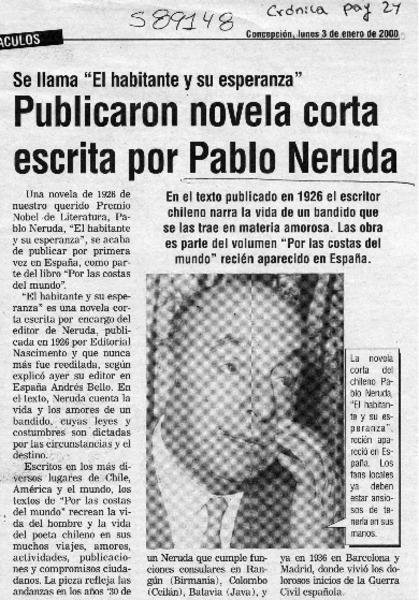 Publicaron novela corta escrita por Pablo Neruda [artículo]