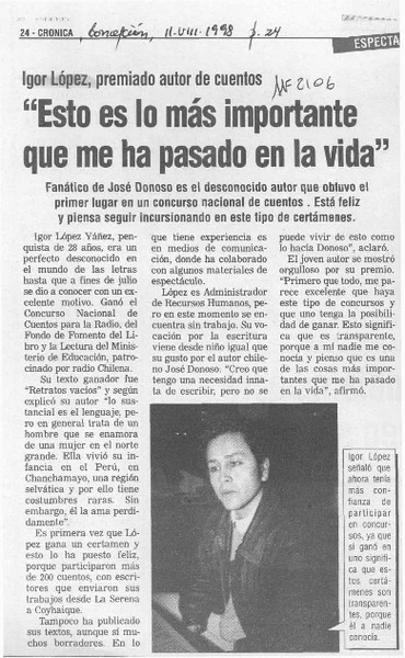 Periodista de "Crónica" ganó importante premio de novelas [artículo] Carlos Basso.