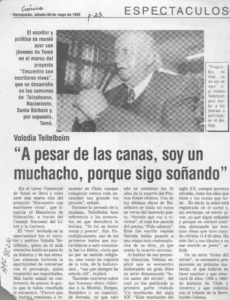 "A pesar de las canas, soy un muchacho, porque sigo soñando" [artículo].