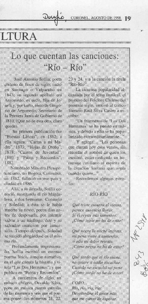Lo que cuentan las canciones, "Río-río" [artículo].