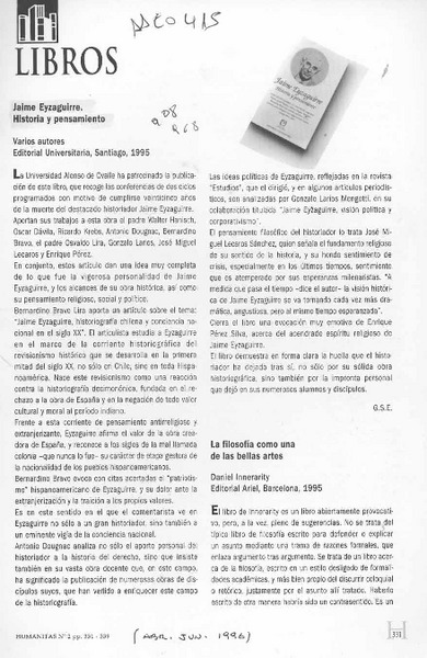 Jaime Eyzaguirre, historia y pensamiento [artículo] G. S. E.
