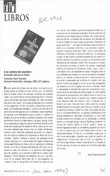 A la sombra del asombro [artículo] Jorge Ossandón Gaete.