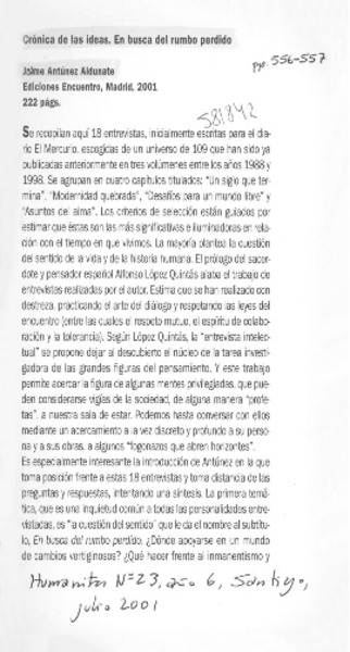 Crónica de las ideas. En busca del rumbo perdido [artículo] Andrés Arteaga Manieu