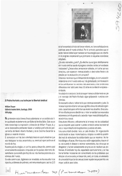 Autores chilenos - Thayer, William - Padre Hurtado y su lucha por la libertad sindical