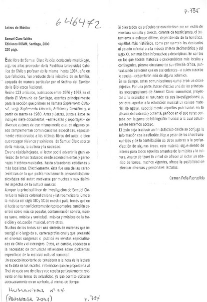Letras de música [artículo] Carmen Peña Fuenzalida