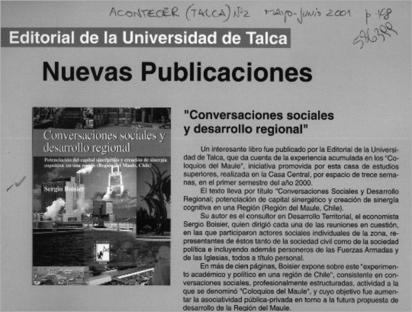"Conversaciones sociales y desarrollo regional" [artículo]