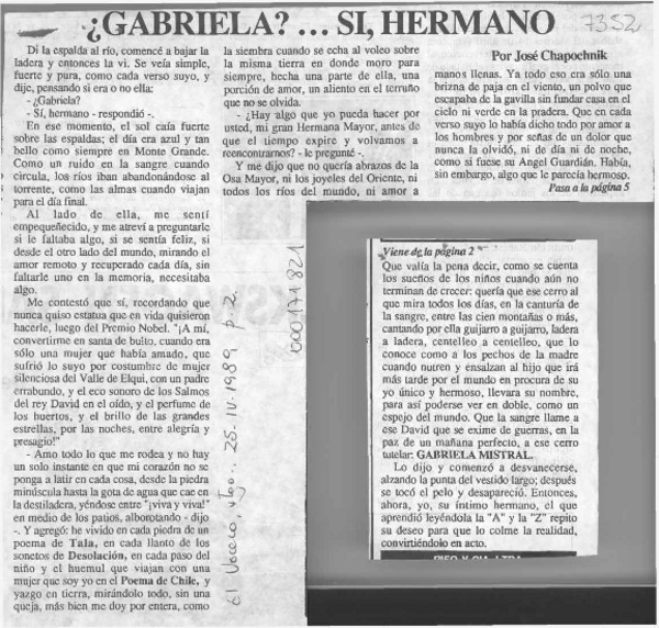 Gabriela? -- sí, hermano [artículo] José Chapochnik.