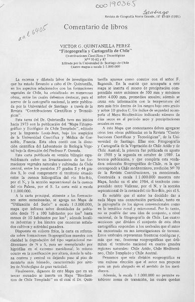 Víctor G. Quintanilla Pérez "Fitogeografía y cartografía de Chile" [artículo] R. Börgel O.