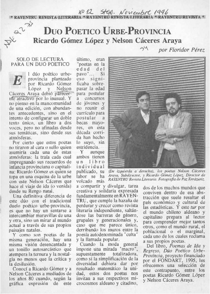Dúo poeético urbe-provincia [artículo] Floridor Pérez.