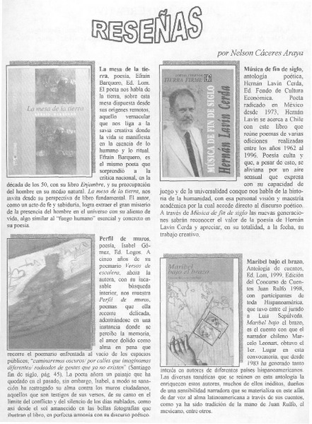 Autores chilenos - Lavín Cerda, Hernán - Perfil de muros - Mesa de la tierra - Música de fin de siglo - Gómez, Isabel - Barquero, Efraín