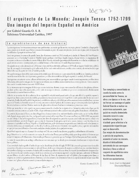 El arquitecto de la Moneda, Joaquín Toesca [artículo] Isabel Cruz de Amenábar.