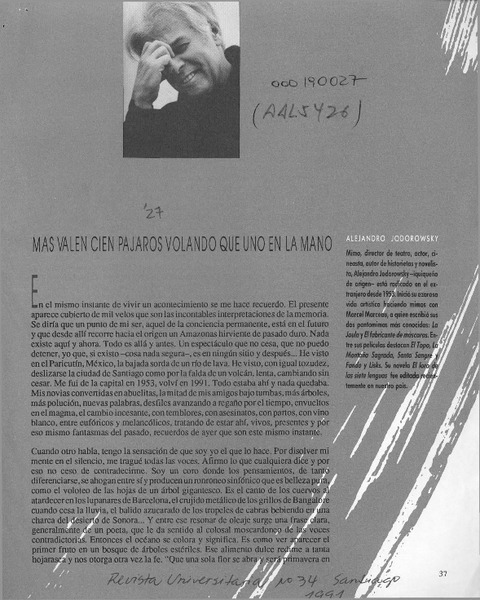 Más valen cien pájaros volando que uno en la mano [artículo] Alejandro Jodorowsky.