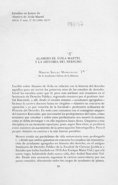 Alamiro Avila Martel y la historia del derecho [artículo] Manuwl Salvat Monguillot.