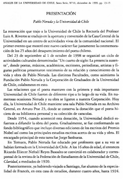 La Universidad de Chile y Pablo Neruda [artículo] Luis Rubilar
