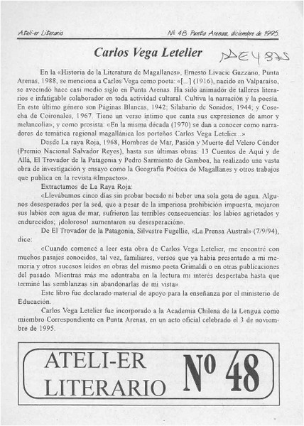 Carlos Vega Letelier fue nominado en la Academia Chilena de la Lengua [artículo].