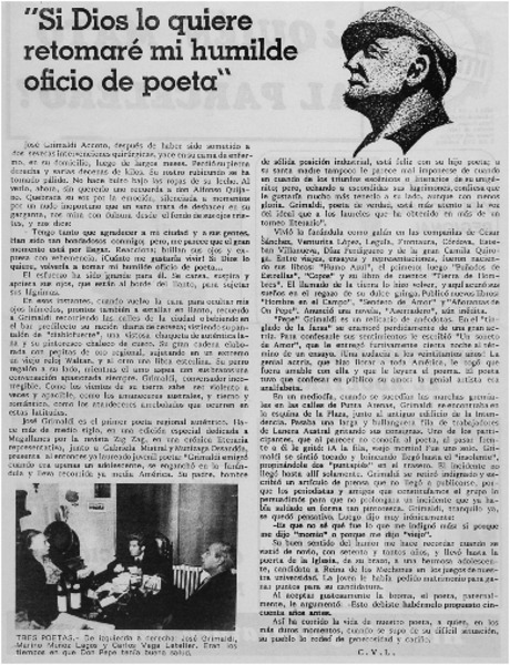 "Si Dios lo quiere retomaré mi humilde oficio de poeta" [artículo] C. V. L.