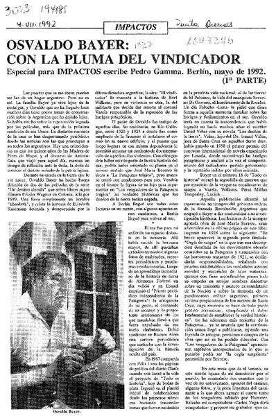 Osvaldo Bayer, con la pluma del vindicador [artículo] Pedro Gamma.