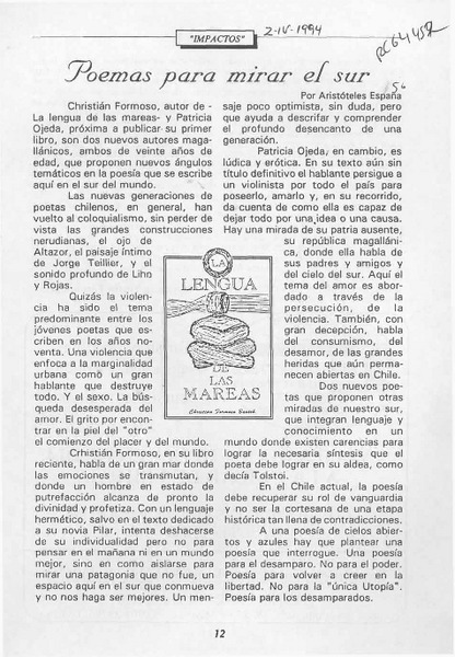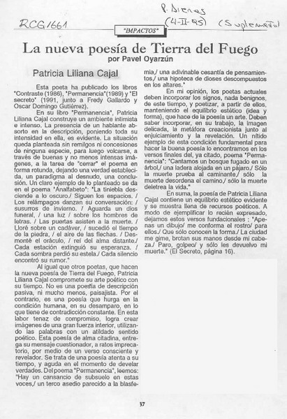 La nueva poesía de Tierra del Fuego [artículo] Pavel Oyarzún.