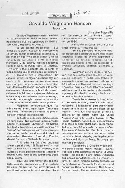 Osvaldo Wegmann Hansen [artículo] Silvestre Fugellie.