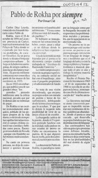 Pablo de Rokha por siempre [artículo] Omar Cid.