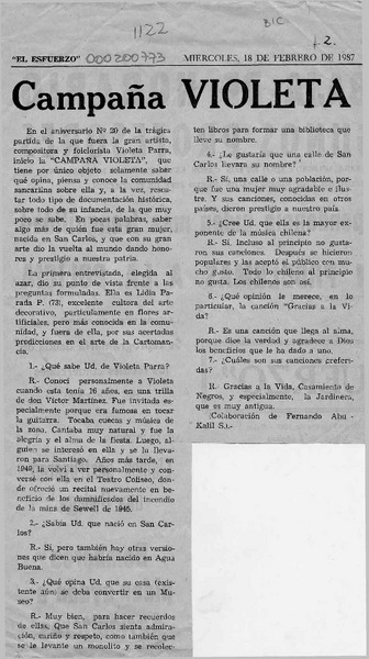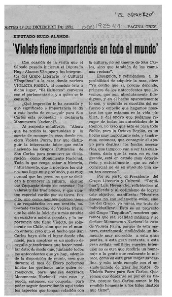 "Violeta tiene importancia en todo el mundo" [artículo] Hugo Alamos.
