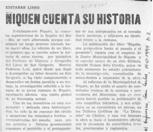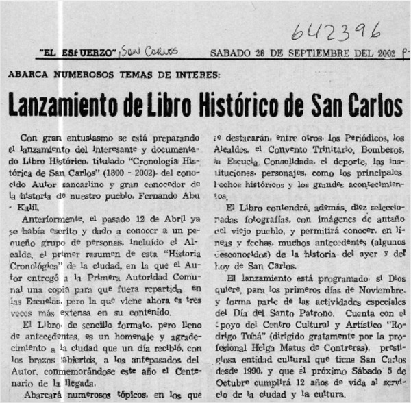 Lanzamiento de libro histórico de San Carlos [artículo]