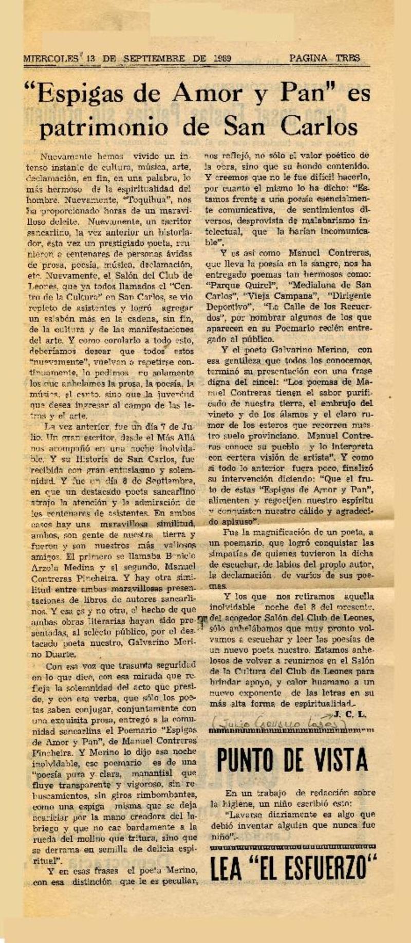 "Espigas de amor y pan" es patrimonio de San Carlos [artículo] J. C. L.
