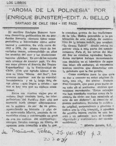 "Aroma de Polinesia" [artículo] Alberto Arraño.