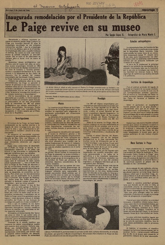 Le Paige revive en su museo [artículo] Sergio López G.