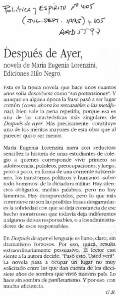 LORENZINI PIZARRO, MARIA EUGENIA - DESPUES DEL AYER