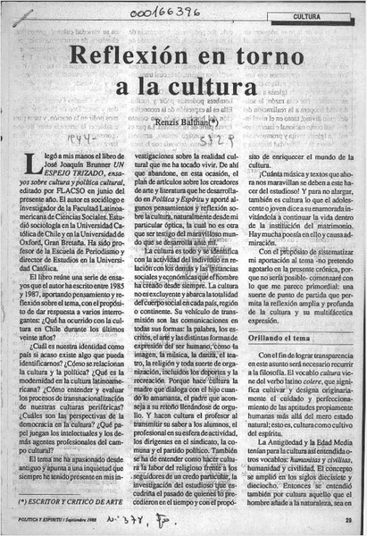 Reflexión en torno a la cultura [artículo] Renzis Balthan.