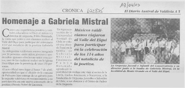 La Municipalidad de Valdivia rinde homenaje a Gómez Catalán. [artículo]