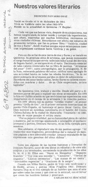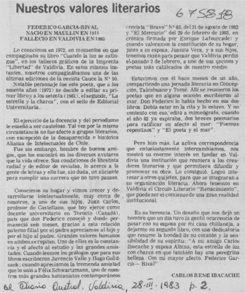 Nuestros valores literarios [artículo] Carlos René Ibacache.