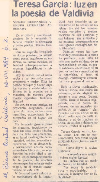 Teresa García: luz en la poesía de Valdivia. [artículo]