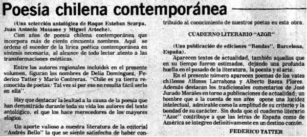 Poesía chilena contemporánea [artículo] Federico Tatter.