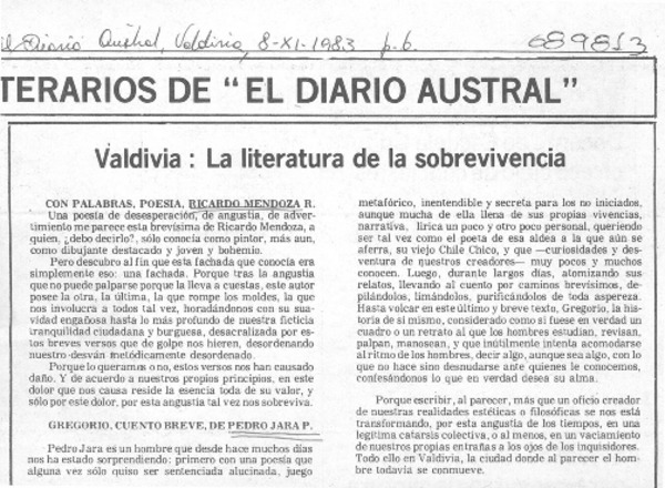 Valdivia, la literatura de la sobrevivencia. [artículo]