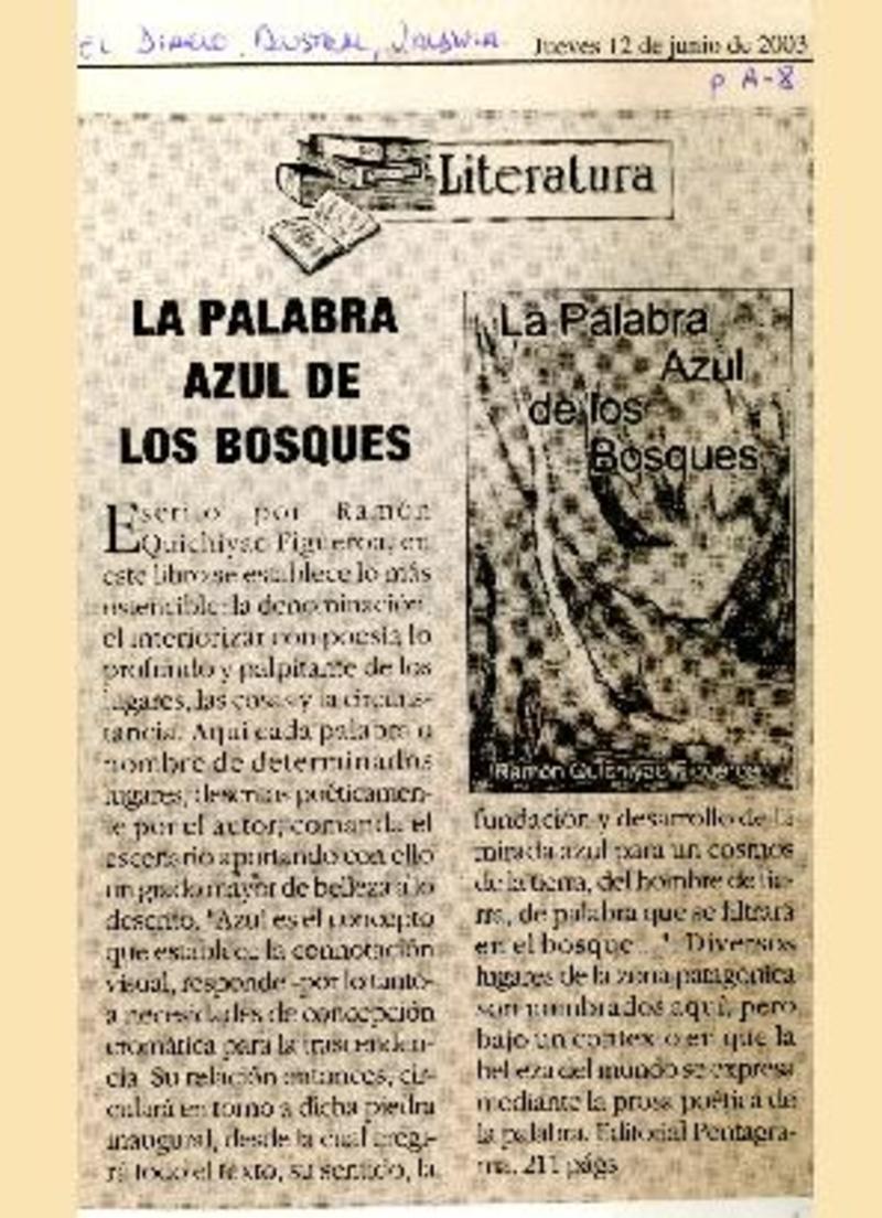 Autores chilenos - Quichiyao Figueroa, Ramón - Palabra azul de los bosques