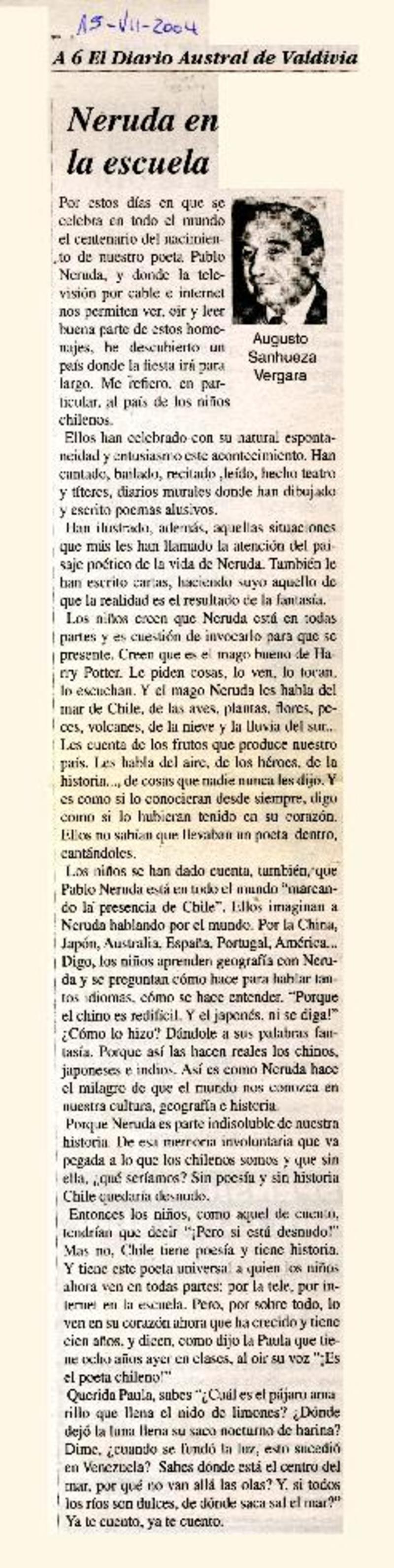 Neruda en la escuela [artículo] Augusto Sanhueza Vergara.